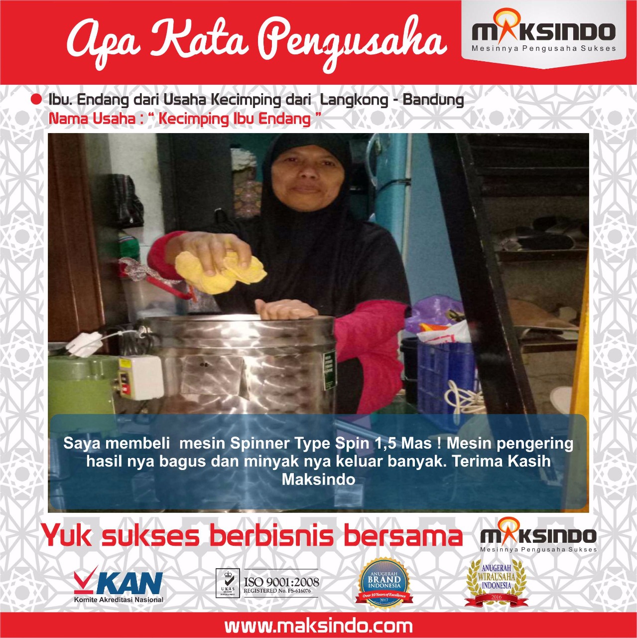 “APA KATA PENGUSAHA PENGGUNA MESIN SPINNER SPIN-1.5, SPIN-3.5 MAKSINDO”