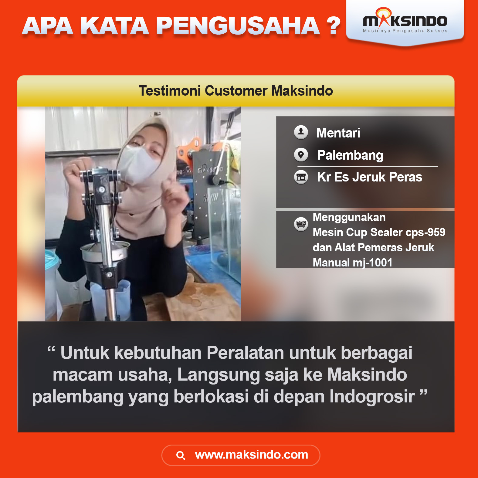 Sekian deskripsi yang mendeskripsikan seputar Alat pemeras jeruk yang dijual di Maksindo. Semoga apa yang kami paparkan diatas dapat bermanfaat dan berguna untuk Anda yang kini ingin memiliki alat yang sesuai dengan bisnis anda.