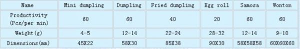 Mesin Cetak Dumpling otomatis ini bisa mencetak aneka bentuk makanan jenis dumpling, samosa, pastel dan yang sejenis. Detail bentuk akhir produk silahkan lihat gambar di bawah
