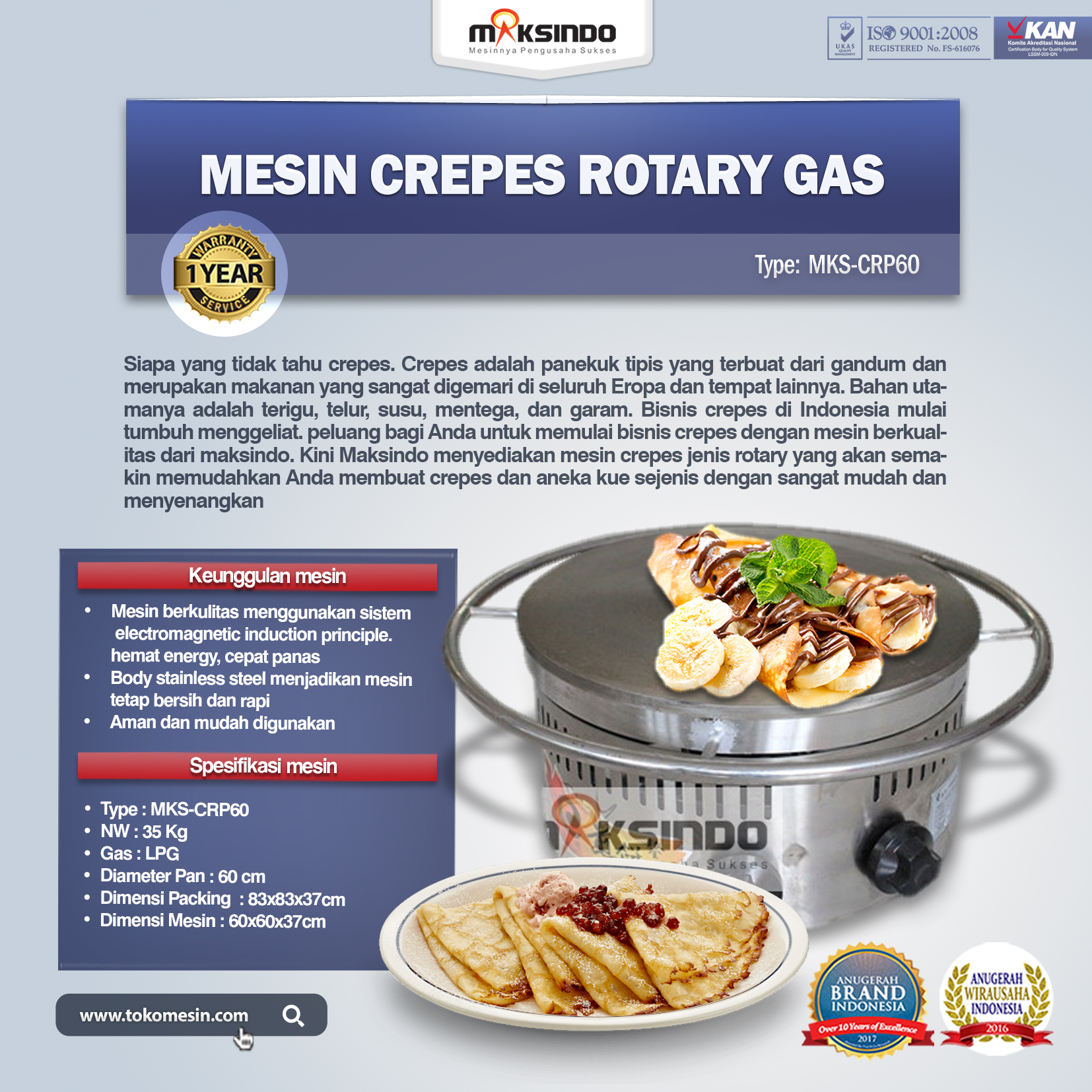 Spesifikasi Gas Crepes Rotary Maksindo