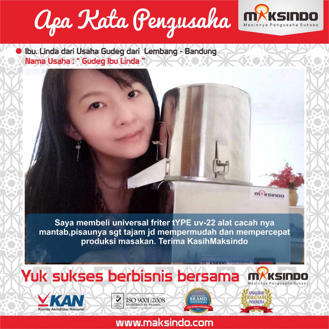 “APA KATA PENGUSAHA PENGGUNA MESIN UNIVERSAL FRITTER MINI MKS-UV22 MAKSINDO”