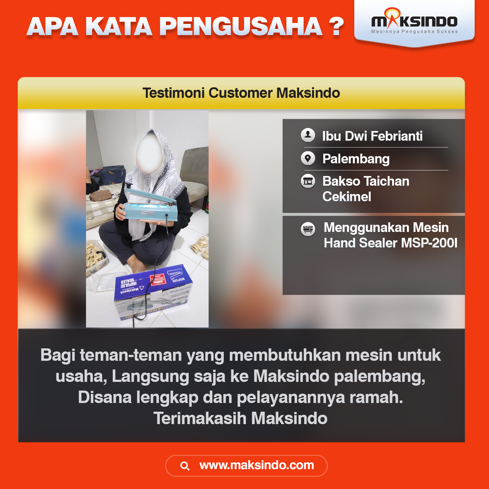 “APA KATA PENGUSAHA PENGGUNA MESIN SEALER PLASTIK HAND SEALER DARI MAKSINDO”