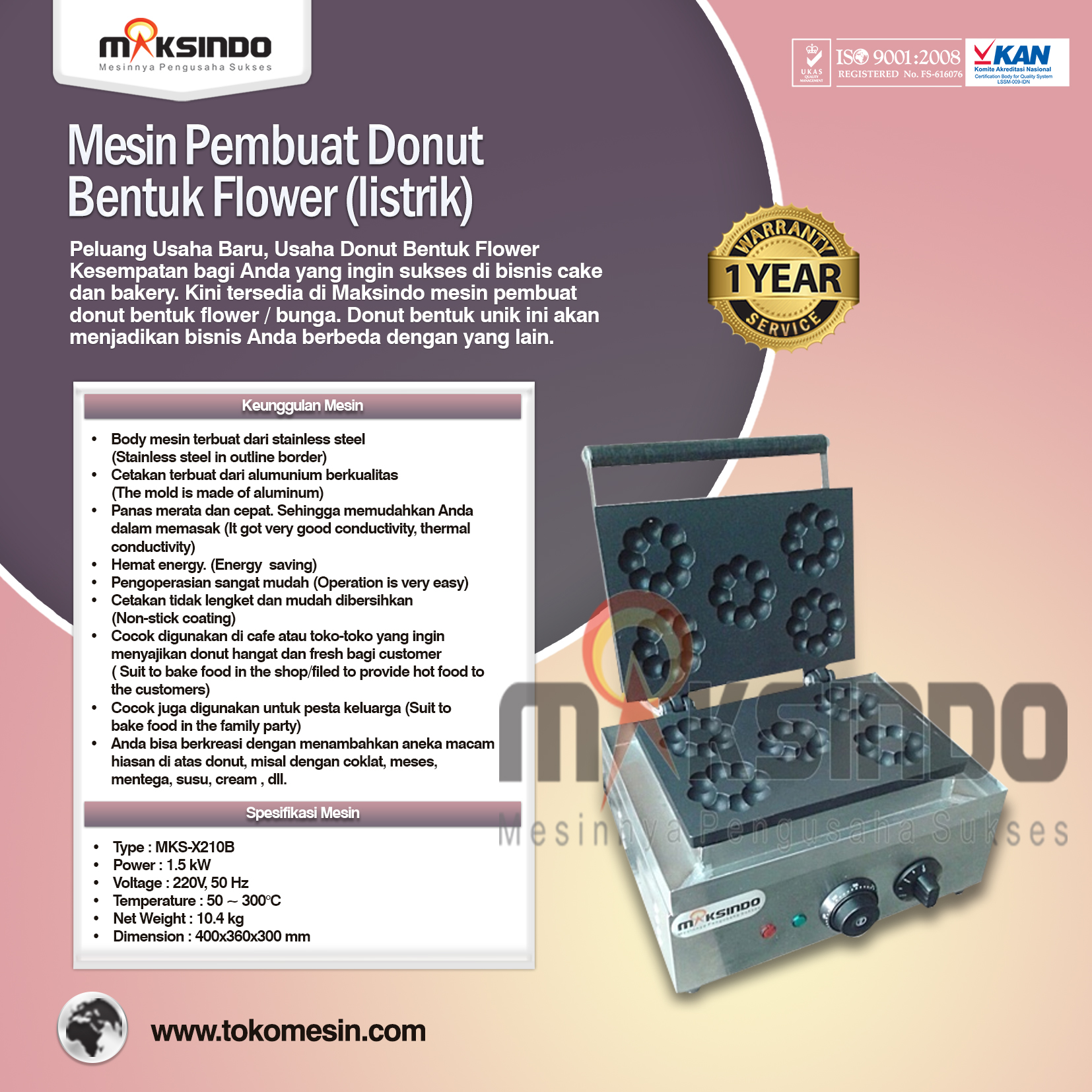 Kesempatan bagi Anda yang ingin sukses di bisnis cake dan bakery. Kini tersedia di Maksindo mesin pembuat donut bentuk flower / bunga. Donut bentuk unik ini akan menjadikan bisnis Anda berbeda dengan yang lain.