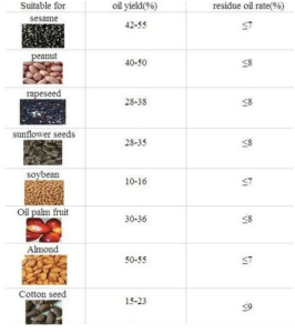 - Beberapa biji-bijian yang bisa diperas dengan mesin ini antara lain : wijen, kacang, biji bunga matahari, walnut, kedelai, dan biji-bijian lainnya