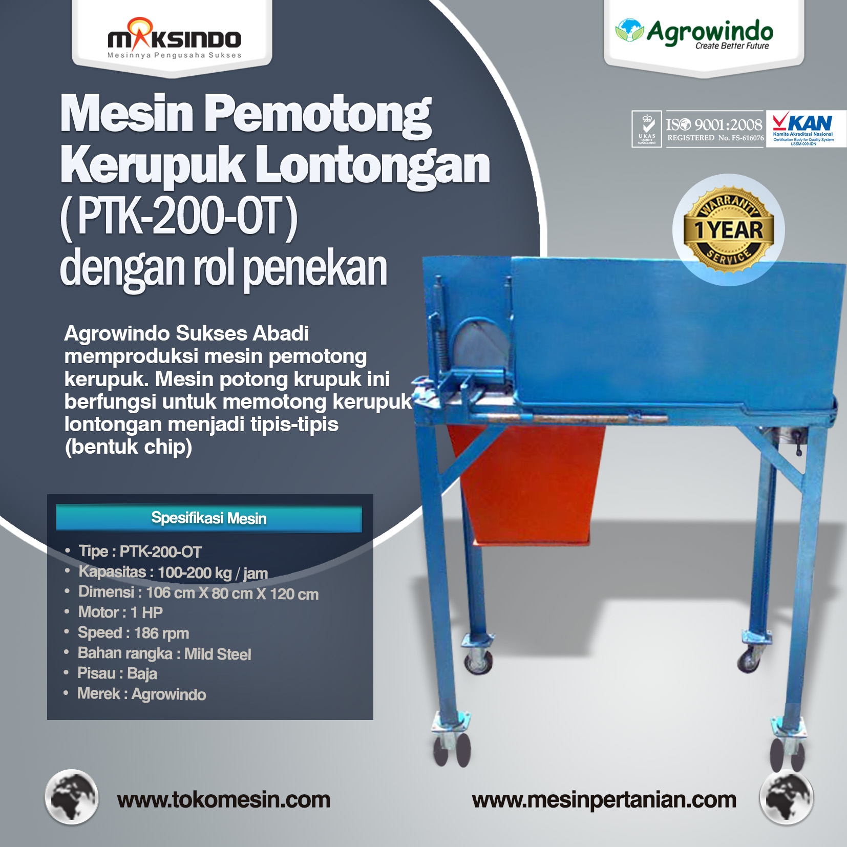 Agrowindo Sukses Abadi memproduksi mesin pemotong kerupuk. Mesin potong krupuk ini berfungsi untuk memotong kerupuk lontongan menjadi tipis-tipis (bentuk chip)