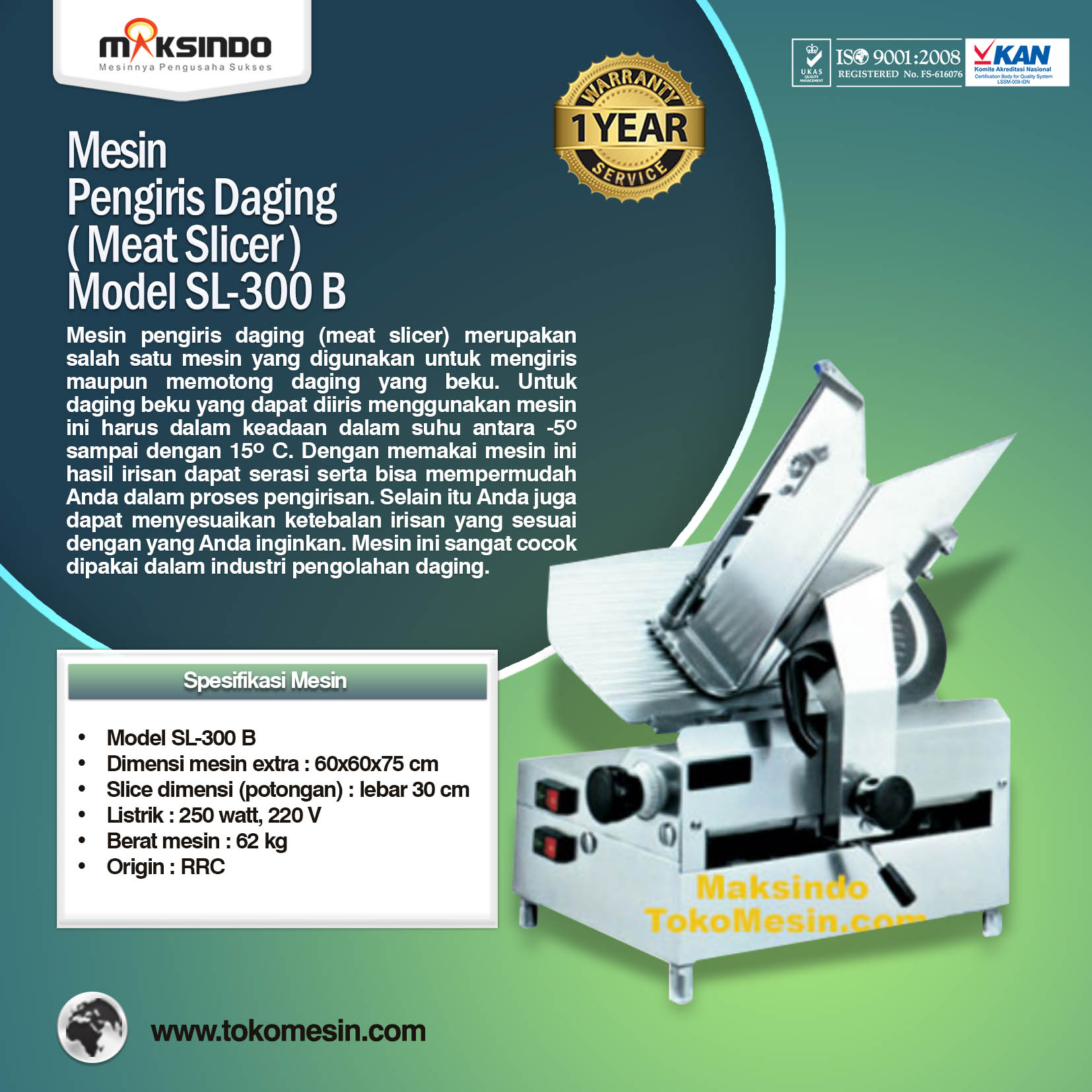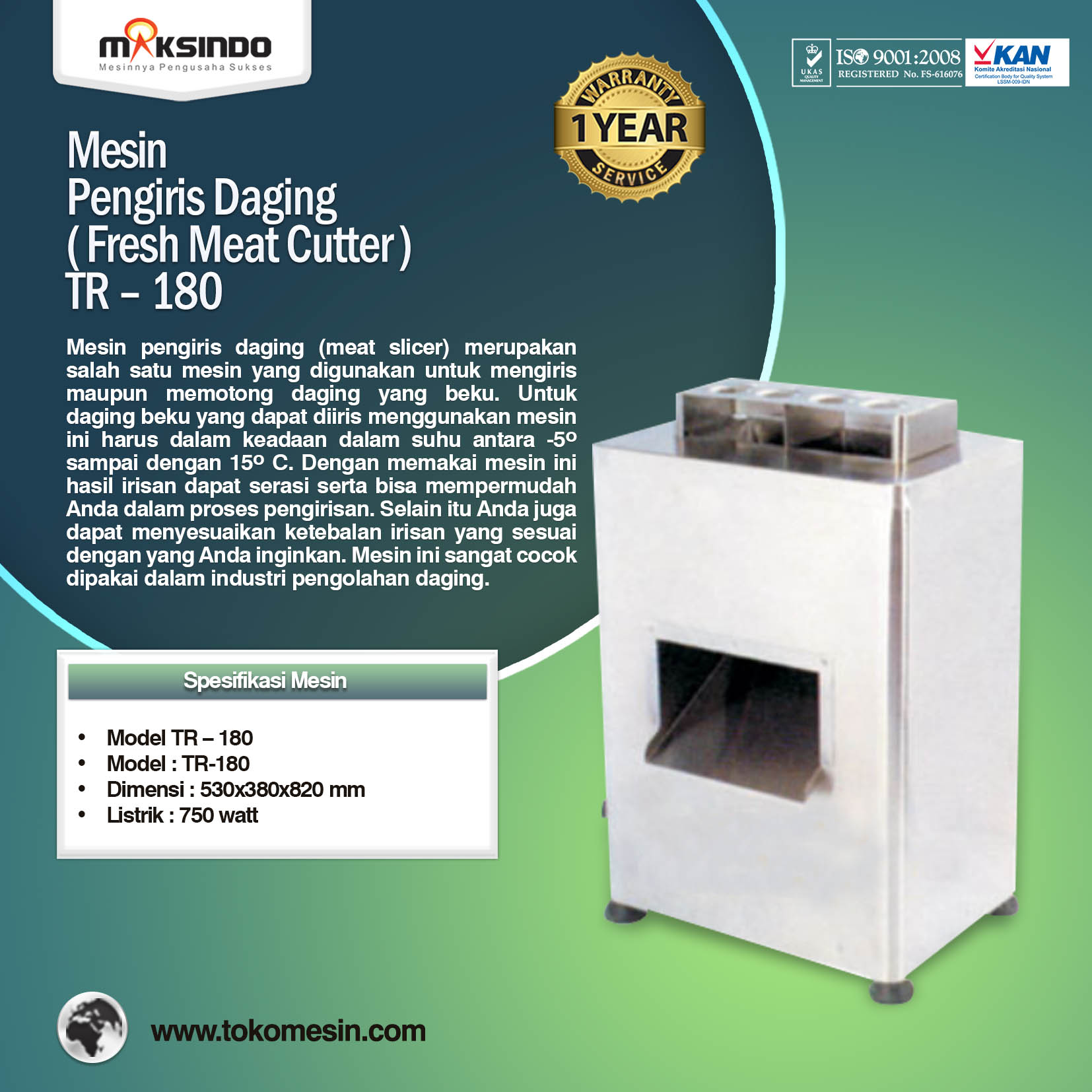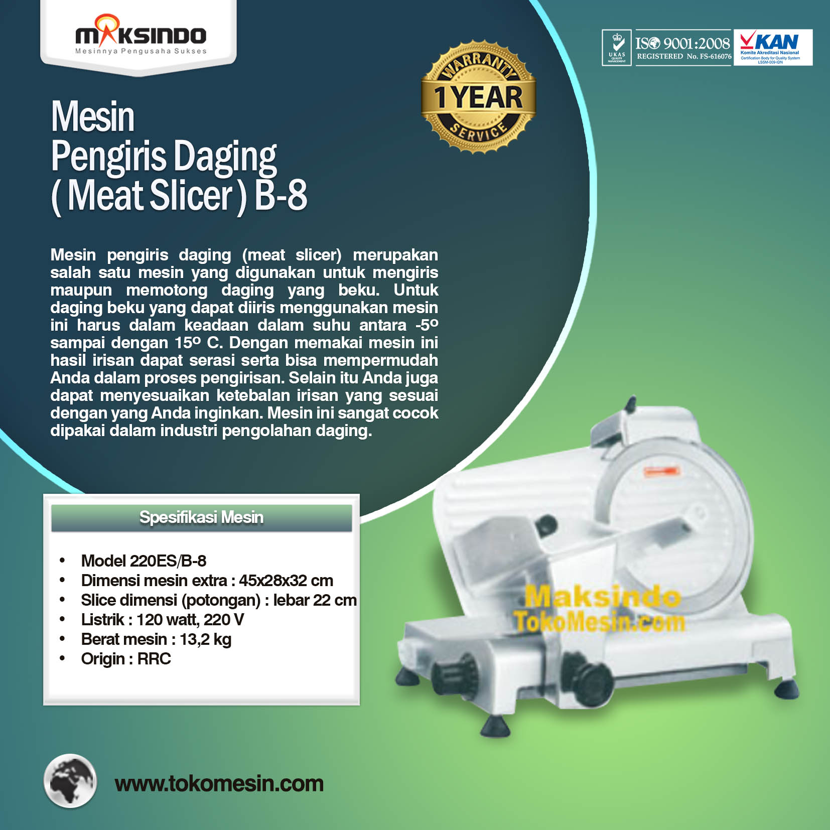 Dapatkan mesin pengiris daging (meat slicer) ini hanya di Toko Mesin Maksindo. Kini Toko Mesin Maksindo sudah ada di berbagai kota di Indonesia. Dapatkan mesin iris daging ini di toko kami