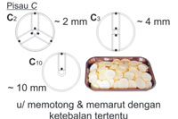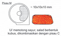 untuk memotong sayur, salad dll berbentuk KUBUS, dikombinasikan dengan pisau C |