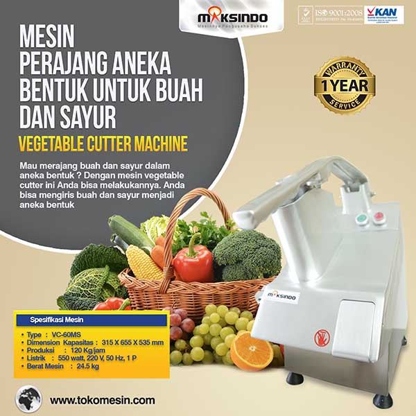 Mesin Perajang Buah dan Sayur dengan aneka bentuk ini dapat membantu Anda dalam merajang buah dan sayur dengan cara cepat dan tidak memerlukan cara manual lagi. Mesin perajang dengan aneka bentuk ini sudah banyak dipasaran Anda dapat membelinya dengan harga murah, namun jika Anda ingin mendapatkan harga mesin perajang buah dan sayur yang murah juga berkualitas maka pergunakan mesin perajang dari Maksindo ini. Mesin ini berfungsi untuk mengiris, memotong juga memarut aneka buah dan juga sayur dengan beraneka bentuk potongan dan ukuran. Mesin ini dapat mengiris almond, bread-crumb, keju dan coklat batangan. Mesin ini dapat menjaga kehigienisan makanan karena terbuat dari stainless steel.