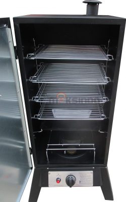 Mesin ikan dan daging asap (gas smoker) ini biasanya dipakai di luar ruangan dengan bahan bakar LPG