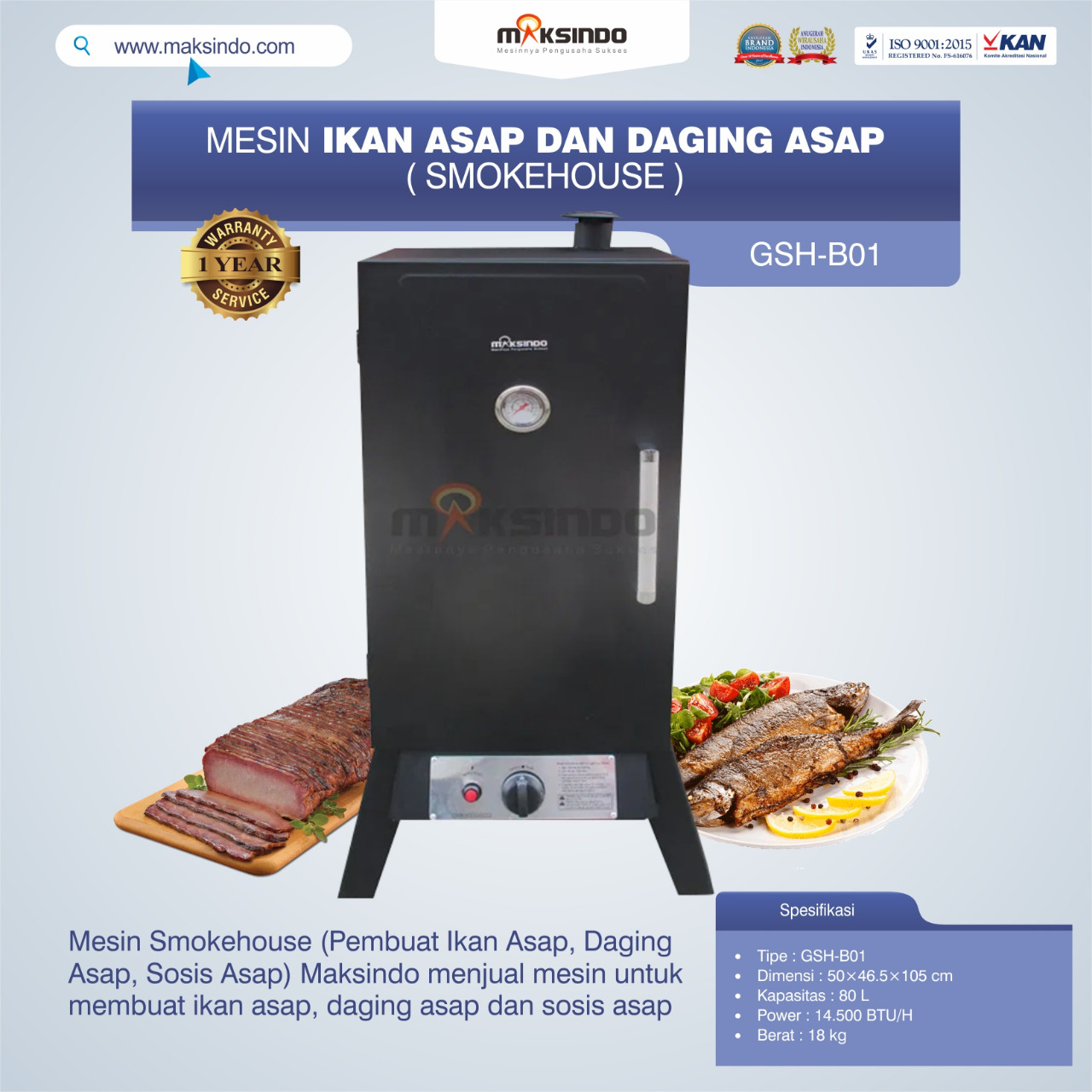 Maksindo menjual mesin untuk membuat ikan asap, daging asap dan sosis asap