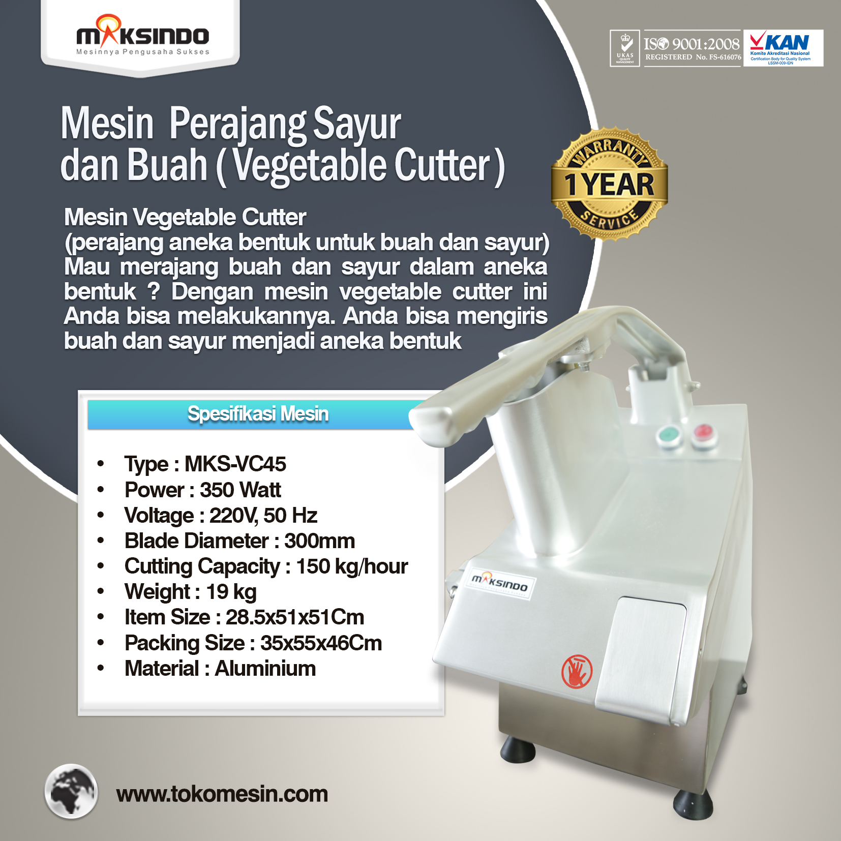 Jual Mesin Vegetable Cutter – MKS-VC45 di Yogyakarta