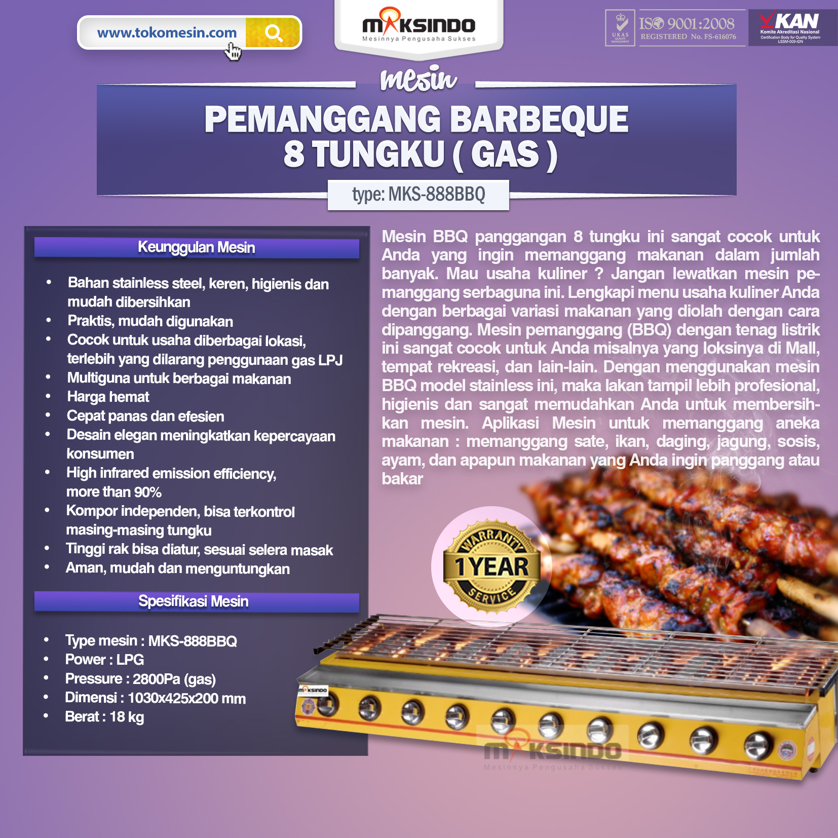 • Type mesin : MKS-888BBQ
