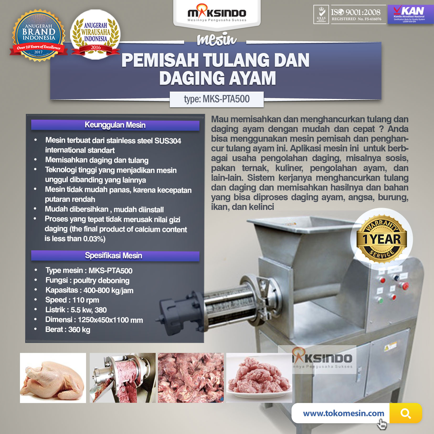 Spesifikasi mesin Pemisah Tulang Ayam