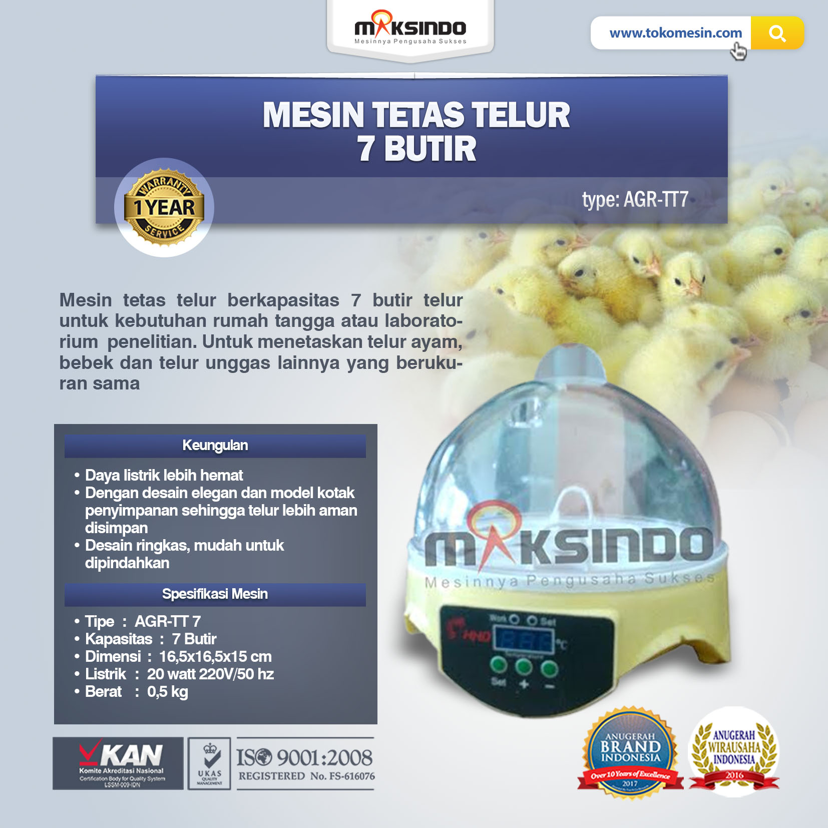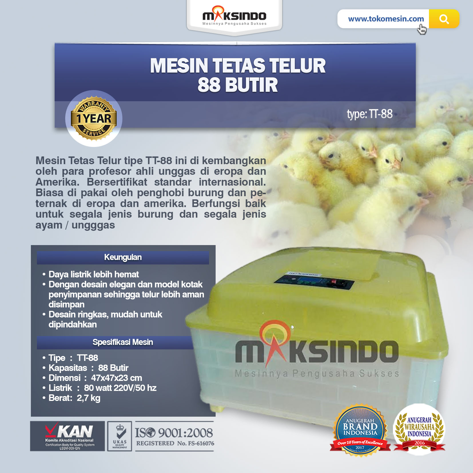 PT.Toko Mesin Maksindo menjual mesin penetas telur Mesin penetas tersebut sudah dilengkapi dengan pengaturan kelembaban.