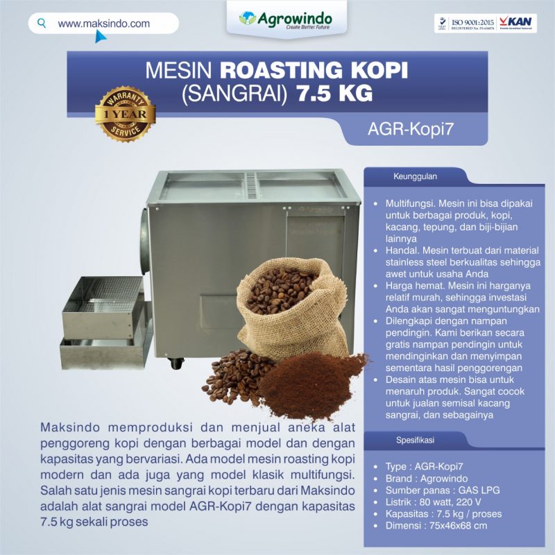 Jual Mesin Roasting Kopi (Sangrai) 7.5 kg AGR-Kopi7 di Yogyakarta