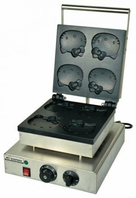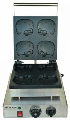 sekarang usaha kuliner di Indonesia semakin banyak dan berkembang, salah satunya ialah waffle. Waffle menjadi salah satu snack yang banyak digemari di berbagai kalangan, Waffle adalah adonan kue yang dimasak dengan berbasis besi yang bermotif jadi memberikan bentuk yang khas dan berkarakter. Dengan cetakan waffle yang beraneka macam karakter juga termasuk strategi untuk menarik pembeli sehingga menjadi kesempatan yang bagus bagi anda yang ingin menggeluti usaha waffle. sekarang di toko maksindo sudah menyuguhkan mesin cetak waffle dengan berbagai macam karakter, salah satunya yaitu cetakan waffle bentuk hello kitty. mesin ini akan membantu dalam proses pembuatan atau mencetak waffle berbentuk hello kitty. Mesin ini terbuat dari bahan yang berkelas tahan panas dan anti lengket, mesin cetak waffle bentuk hello kitty ini juga menggunakan sumber panas dari gas, sehingga mudah untuk mengatur suhu panas yang digunakan saat proses pembuatan.