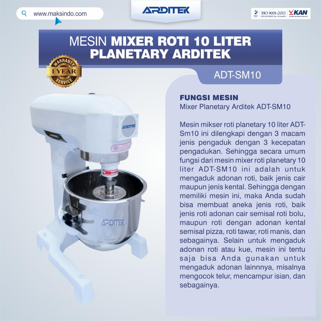 Mesin mikser roti planetary 10 liter ADT-Sm10 ini dilengkapi dengan 3 macam jenis pengaduk dengan 3 kecepatan pengadukan. Sehingga secara umum fungsi dari mesin mixer roti planetary 10 liter ADT-SM10 ini adalah untuk mengaduk adonan roti, baik jenis cair maupun jenis kental. Sehingga dengan memiliki mesin ini, maka Anda sudah bisa membuat aneka jenis roti, baik jenis roti adonan cair semisal roti bolu, maupun roti dengan adonan kental semisal pizza, roti tawar, roti manis, dan sebagainya. Selain untuk mengaduk adonan roti atau kue, mesin ini tentu saja bisa Anda gunakan untuk mengaduk adonan lainnnya, misalnya mengocok telur, mencampur isian, dan sebagainya