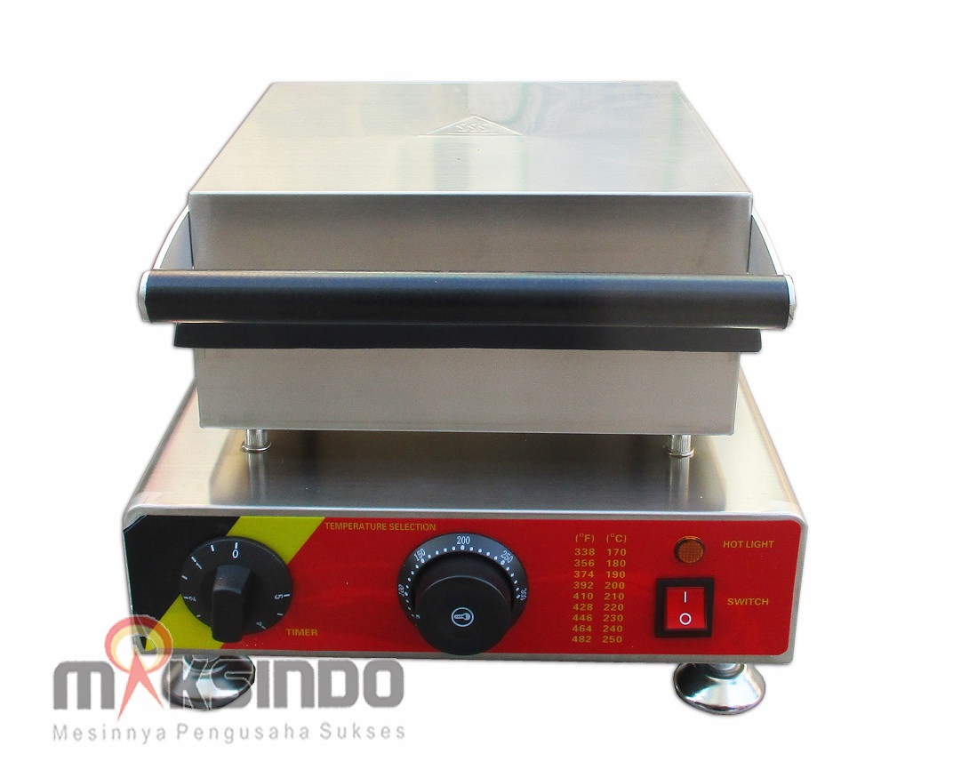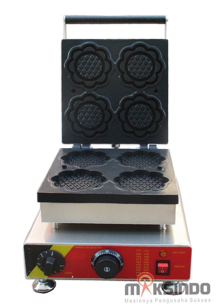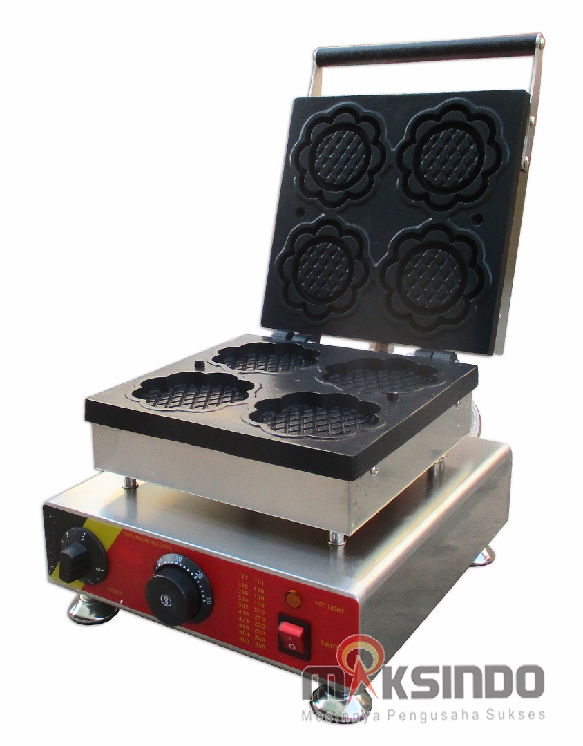 Maksindo menjual mesin pembuat kue waffle. Kue dengan rasa khas nikmat ini bisa dengan mudah dibuat dengan mesin waffle ini. Mesin dirancang dengan cetakan berbentuk bunga yang membuat kue waffle lebih menarik.